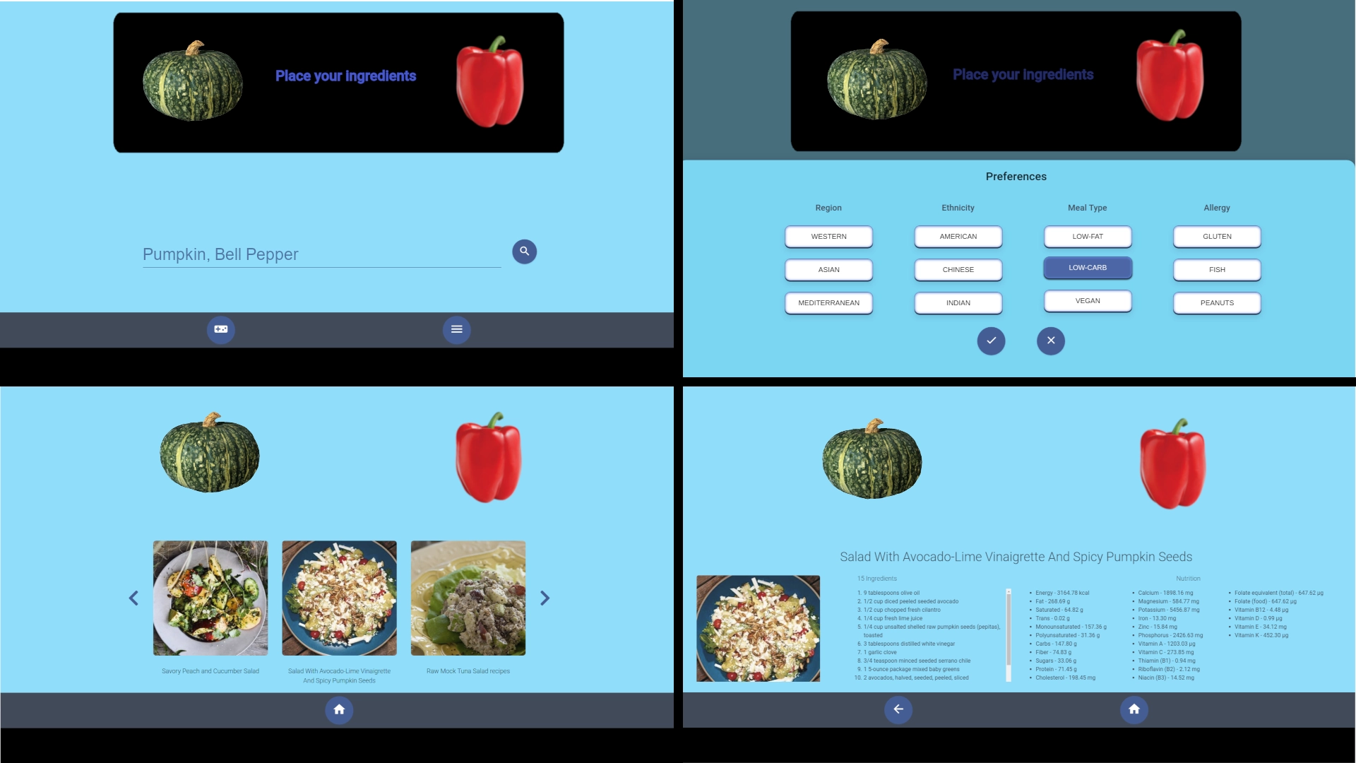 The system projects an user-friendly screen on any surface or table and turn the surface into a touch screen by using advanced image processing techniques. It assists users to choose the diet preferences based on personalized needs such as low-fat, gluten-free, etc. The system detects any ingredients placed on the table and recommends recipes based on ingredients and diet preferences in real time. The system integrates with smart wearables to provide a comprehensive view of personalized wellness profile including calories, weight, and other parameters for sustainable healthy benefits.